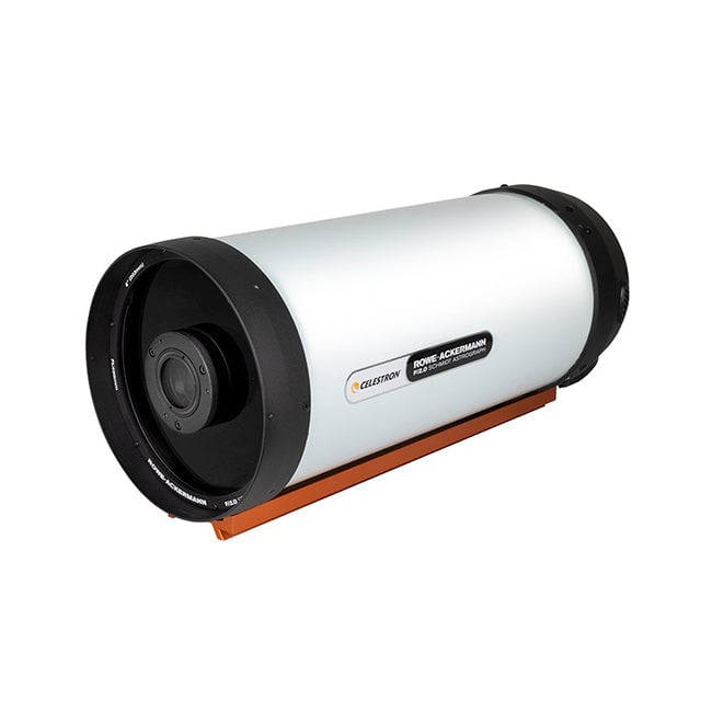 The Celestron 8" Rowe-Ackermann Schmidt Astrograph (RASA) paired with the CGX German equatorial mount delivers an ultra-fast f/2.0 imaging system designed for spectacular wide-field deep-sky astrophotography. This portable astrograph features a 203mm aperture and 400mm focal length that captures stunning images in seconds, making it ideal for color astronomical CMOS cameras, smaller CCD cameras, and mirrorless cameras. The patented Rowe-Ackermann optical design produces a flat field free of aberrations across the entire APS-C sensor, while the CGX mount's 55 lb load capacity and advanced computerized tracking system with All-Star Polar Alignment provide a sturdy platform for serious astroimagers.
