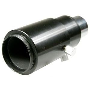 The Meade Variable Projection Camera Adapter # 07361 allows for a range of effective focal ratios during eyepiece-projection photography. Compatible with telescopes with 1.25" focuser, it inserts into any 1.25" eyepiece holder and a 1.25" eyepiece is then typically inserted into the adapter, usually in the 15mm to 32mm focal length range. The machined sliding-cell assembly can be fixed at any position along its length and is held in position via thumbscrew. It can be used for prime focus photography without eyepiece when using just the nosepiece.