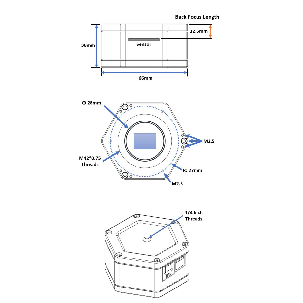 Saturn-M SQR USB3.0 Mono Camera IMX533 (Saturn-M-SQR)