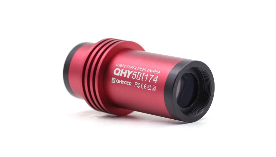 The QHY5III 174C is the first in QHY's new line of QHY5III series CMOS USB3.0 cameras, designed to be excellent for Lunar, Planetary, and Solar imaging. It features a 1/1.2-inch, 2.3 Megapixel SONY Exmore IMX174 CMOS sensor with global shutter, large 5.6um pixel size and high quantum efficiency of 78%. This camera produces a high frame rate with the USB 3.0 interface, delivering 138 frames per second at full resolution, up to 490 FPS at selected ROI, making it ideal for capturing fast planetary motion and lunar detail.