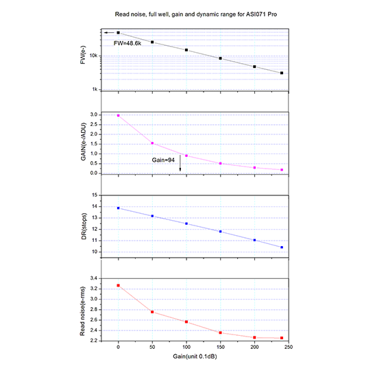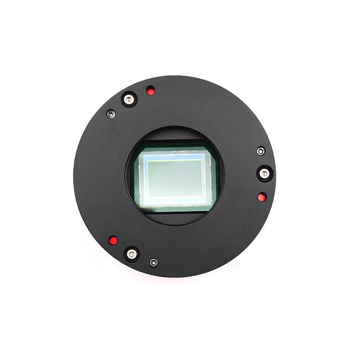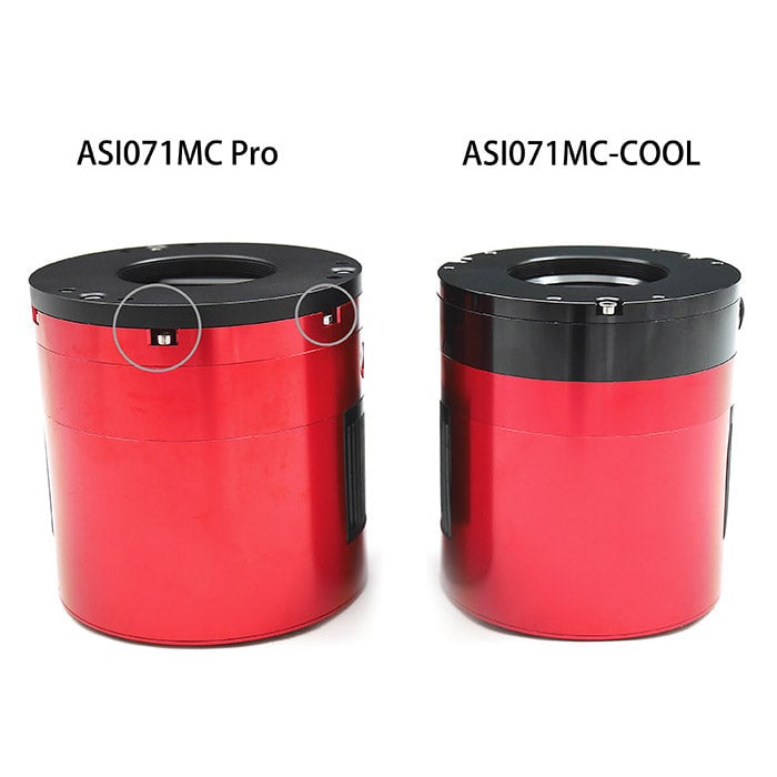 The ZWO ASI071MC Pro is a cooled APS-C format color astronomy camera designed for deep-sky, lunar, and solar imaging with professional-grade features. Built around Sony's IMX071 CMOS sensor with 16.2 megapixels and large 4.8μm pixels, it delivers exceptional sensitivity with exceptionally low read noise and a 14-bit dynamic range for clean, detailed astronomical images. The integrated two-stage TEC cooling system reduces sensor temperature 35-40°C below ambient, minimizing thermal noise for extended exposures, while the 256MB DDR3 buffer enables stable USB 3.0 data transfer up to 10 fps at full resolution with minimal amp-glow artifacts.