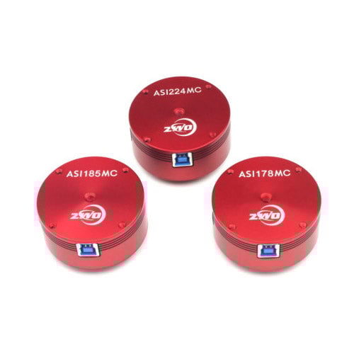 The ZWO ASI224MC is a compact 1.2-megapixel color CMOS astronomy camera featuring Sony's advanced IMX224 Exmor sensor with NIR technology for exceptional low-noise planetary and small deep-sky imaging. With USB 3.0 connectivity supporting up to 150 fps at full resolution, built-in ST4 autoguiding port, and an ultra-lightweight aluminum body, this camera delivers single-shot color imaging without requiring separate filter wheels. Ideal for planetary observers, lunar imagers, and solar photographers seeking high-contrast, high-resolution color astronomical images of solar system objects.