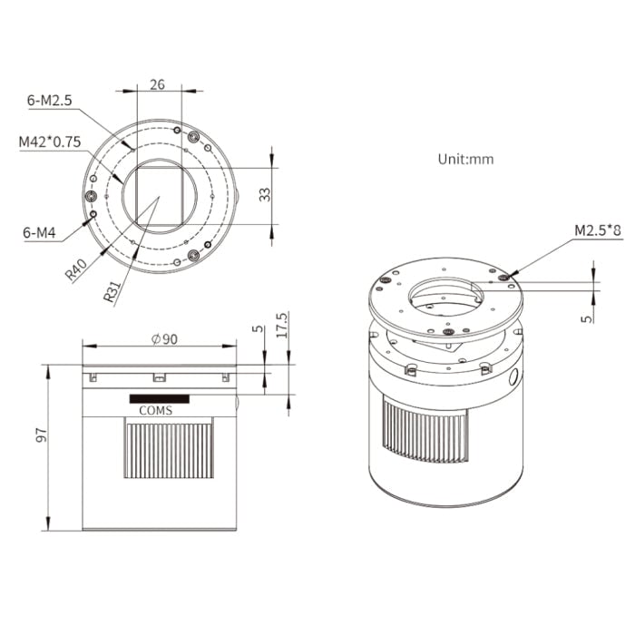 ASI2600MC Pro Color Camera -New Gen. (ASI2600MC-P25)