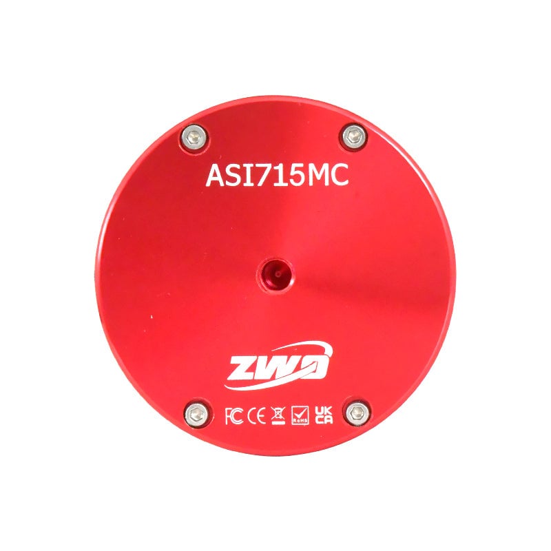 The ZWO ASI715MC is a sensitive color camera with a 1/2.8" sensor and 8.46 megapixel resolution, featuring Sony's STARVIS technology with ultra-high sensitivity and low readout noise ideal for astronomical imaging of planets and smaller deep-sky objects. With tiny 1.45µm pixels, it excels as a high-resolution camera for astrophotography, making it perfect for sharpening planetary features. The camera is equipped with a USB 3.0 transmission interface and 256MB DDR cache to ensure stable data transmission, allowing it to run at 45.1fps in 10-bit high speed mode. At only 126 grams, the camera is lightweight, making it an excellent choice for planetary, lunar, and guide camera applications.