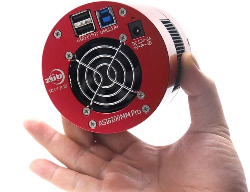 The ZWO ASI6200MM Pro is a professional-grade full-frame monochrome astrophotography camera built around Sony's back-illuminated IMX455 sensor, delivering 61.2 megapixels of exceptional detail with ultra-low noise for deep-sky imaging. This imaging package includes the cooled camera body, a 2-inch 5-position electronic filter wheel, OAG-L off-axis guider, and LRGB filter set, providing everything needed to begin serious astrophotography immediately. With native 16-bit ADC technology, two-stage TEC cooling down to 35°C below ambient, zero amp glow, and 91% peak quantum efficiency, the ASI6200MM Pro is ideal for capturing stunning images of galaxies, nebulae, and star clusters through targeted narrowband or LRGB filter imaging.