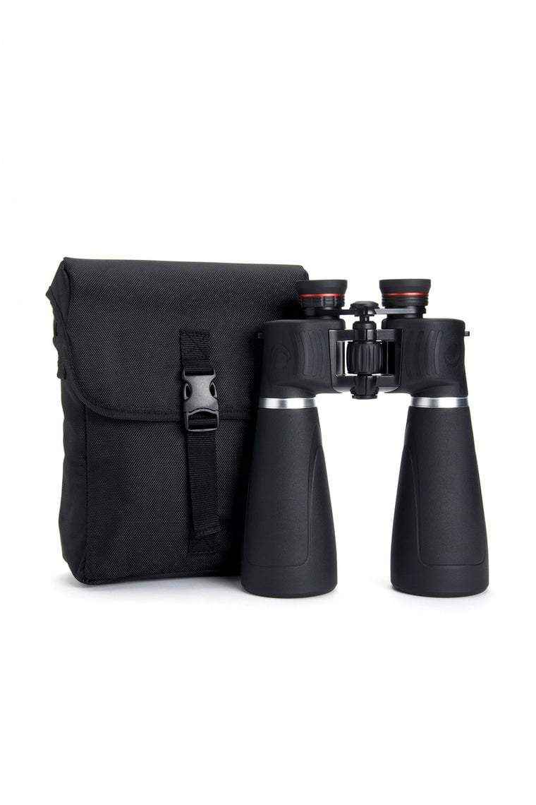 The Celestron SkyMaster Pro 15x70mm Porro Binoculars are ideal for amateur astronomers, featuring large objective lenses, BaK-4 prisms, and fully multi-coated XLT optics that deliver crisp, high-contrast images with outstanding resolution. With 70mm objective lenses offering tremendous light-gathering capabilities for superior low-light performance, these binoculars excel for dusk, dawn, and nighttime astronomical viewing. The built-in tripod adapter with removable RSR "Reflex Sight Ready" Rail enables attachment to a tripod for stability and allows mounting of an optional red-dot finderscope for quick object location. 17mm of eye relief provides comfortable viewing for both eyeglass and non-eyeglass wearers.