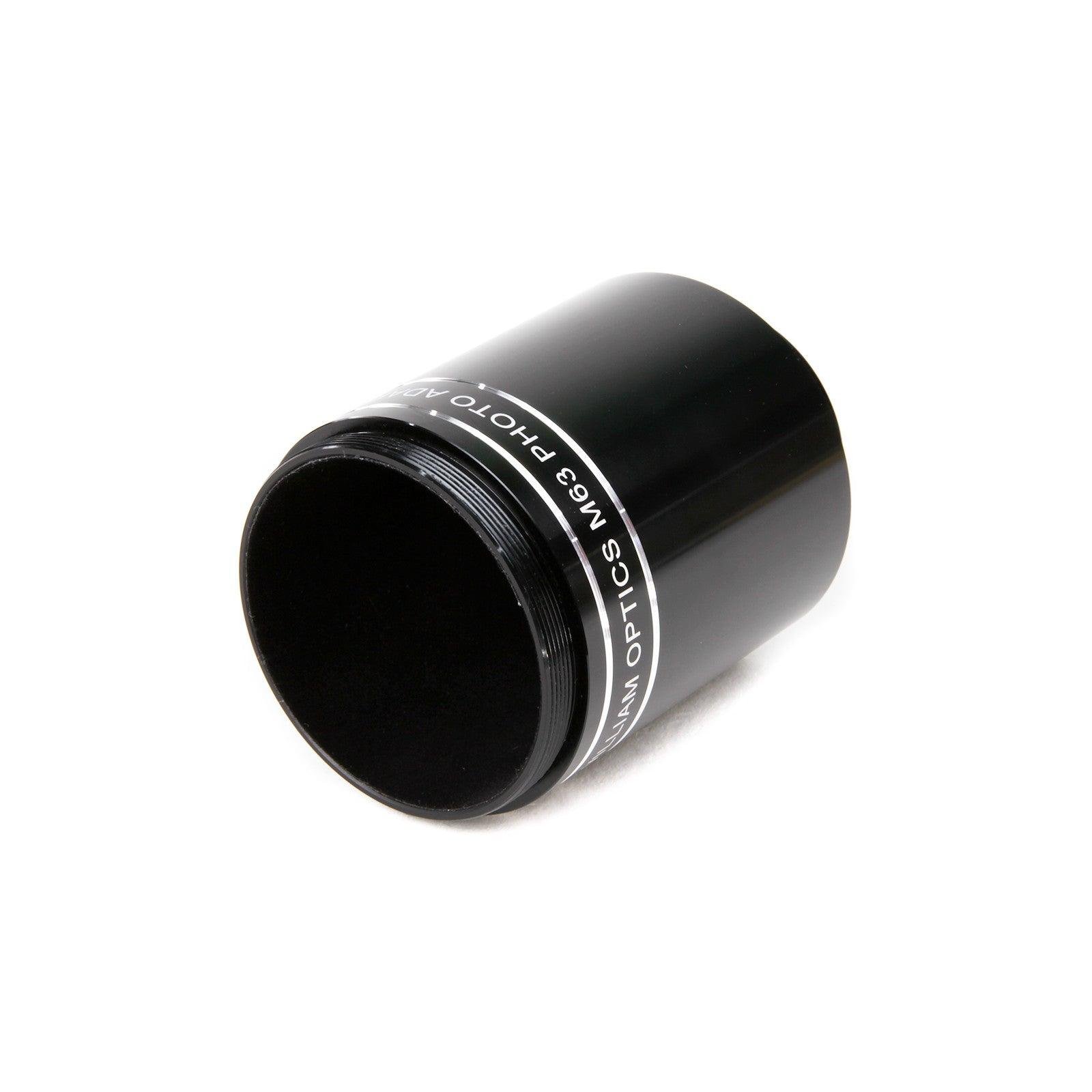 The William Optics M63 to M48 Photo Adapter is a precision threaded extension tube designed to connect telescopes and accessories with M63 male threads to M48 male threads, enabling seamless integration with cameras, focal reducers, and other optical components. Ideal for William Optics Zenithstar and Gran Turismo refractor series, this rigid adapter provides an additional 80mm of optical length with minimal backlash, making it essential for reaching focus with imaging equipment. The adapter requires a 48mm T-ring for DSLR attachment and can be paired with an optional M48-to-42mm thread adapter for compatibility with smaller accessories. Built from durable materials, this adapter delivers a secure, stable connection for astrophotography setups.