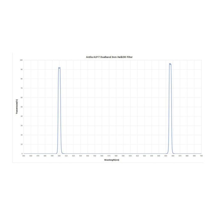 The Antlia ALP-T Dualband 3nm Ha & OIII filter is a dual narrowband filter engineered for one-shot color (OSC) cameras to capture high-contrast deep-sky nebulae images by isolating H-alpha and OIII emission lines while effectively blocking light pollution, moonlight, and airglow. With an ultra-narrow 3nm FWHM passband and optical density of 4.5 on unwanted wavelengths, it delivers superior signal-to-noise ratio and exceptional contrast even in bright skies. When paired with Antlia's complementary 3.5nm SII & H-beta filter, it enables true four-channel narrowband imaging (Ha/OIII/SII/Hb) for advanced false-color processing and detailed nebulae imaging.