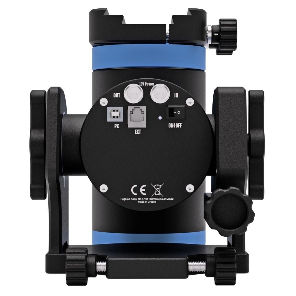 The Pegasus Astro NYX-101 is a high-performance equatorial/altazimuth GoTo mount featuring strain wave harmonic gears on both axes for backlash-free operation and exceptional tracking accuracy. Weighing only 6.4 kg, it can support payloads up to 20 kg without counterweights (66 pounds with counterweights), making it ideal for astrophotographers seeking a portable, high-payload mount. The mount integrates modern features including WiFi and USB connectivity, ASCOM Alpaca support, built-in atmospheric refraction corrections, and 0.10 arcsecond RA resolution for precision guided imaging of deep-sky objects with large telescopes and full imaging trains.
