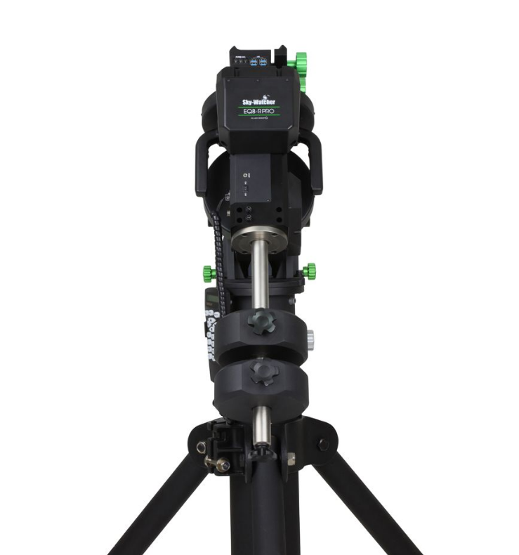 The Sky-Watcher EQ8-R Pro is an observatory-class GoTo mount designed for large payloads and long-exposure astrophotography. With an impressive 110-pound (50 kg) payload capacity supported by a robust right ascension axis driven by a dual belt system that eliminates backlash and minimizes periodic error, this mount accommodates the largest telescopes and heavy imaging rigs. The EQ8-R Pro is powered by Sky-Watcher's SynScan GoTo system with a database of over 42,000 objects and supports multi-star alignment, PEC training, and polar alignment assistance. An integrated cable management system with built-in power, USB, and serial data ports that rotate with the RA axis keeps cables tidy and reduces wear and tear.