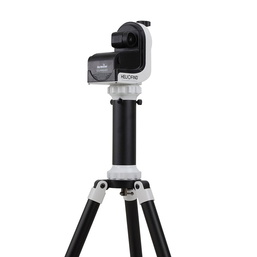 The Sky-Watcher SolarQuest is a lightweight, easy-to-use motorized alt-azimuth solar tracking mount that uses patented HelioFind technology and built-in GPS to automatically level, locate, and track the Sun with a single button press. Featuring a 11-pound payload capacity and V-style dovetail saddle, this mount is purpose-built for safe solar observation, making it ideal for eclipse observation, daytime solar astronomy education, and solar imaging without complex alignment procedures. The HelioFind system uses indirect solar location methods with no exposed optical sensors, and tracks at solar sidereal rate for precise solar detail viewing.