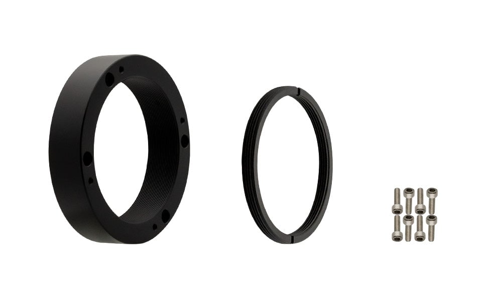 The ZWO M54 Adapter for 20mm Backfocus with OAG-L is a specialized optical adapter designed for integrating ZWO's OAG-L (Large Off-Axis Guider) with ASI cooled cameras. This adapter provides 15mm of optical path length and achieves the full 20mm backfocus specification when combined with an optional 5mm sensor tilt adapter, making it ideal for astrophotographers who want to use an off-axis guider without a filter wheel. The adapter accommodates standard 2" filters and maintains the critical 55mm back focus distance necessary for proper imaging train configuration with modern telescope systems.