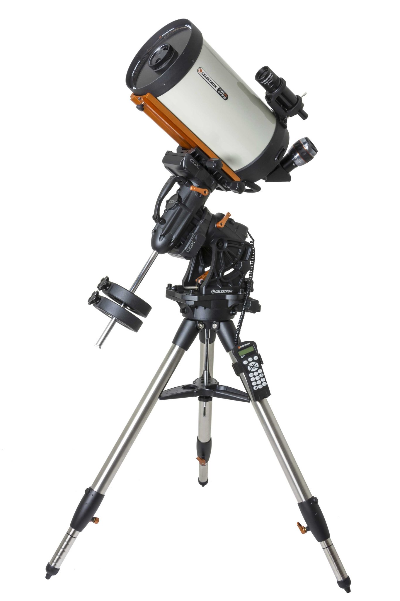 The Celestron CGX 925 EdgeHD combines a 9.25-inch aperture aplanatic EdgeHD optical system with a precision Celestron CGX computerized German equatorial mount. The advanced EdgeHD optical design features a dual-element field flattener lens that reduces off-axis coma and produces aberration-free images across a 42mm image circle, delivering an astrograph-quality focal plane more than three times flatter than a standard Schmidt-Cassegrain telescope. Equipped with Celestron's renowned Starbright XLT multicoatings on every optical surface, the CGX 925 HD provides light grasp over 1100 times that of the human eye, revealing star clusters, nebulas, planets, and galaxies in exceptional visual and photographic detail. With a 40-pound payload capacity, the CGX mount delivers rock-steady imaging and visual observing with the lightweight EdgeHD optical system.