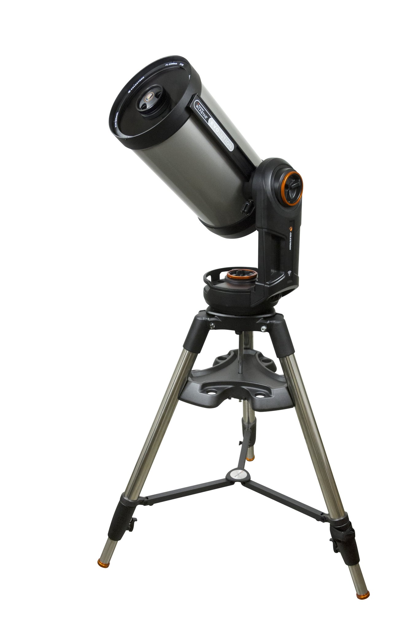 The Celestron NexStar Evolution 9.25" features a 9.25″ (235mm) Schmidt-Cassegrain telescope with a focal length of 2350mm and an f/10 focal ratio. This portable optical tube incorporates StarBright XLT optical coatings and Fastar compatibility, paired with a computerized GoTo mount featuring high-performance worm gears and motors for improved tracking accuracy. As the first Schmidt-Cassegrain telescope with integrated WiFi, it allows you to leave your hand control behind and slew to celestial objects via the SkyPortal mobile app for iOS and Android. Ideal for astrophotography with superior tracking, the 9.25-inch NexStar Evolution excels at capturing deep-sky images, such as the Orion Nebula, by simply attaching a DSLR camera.