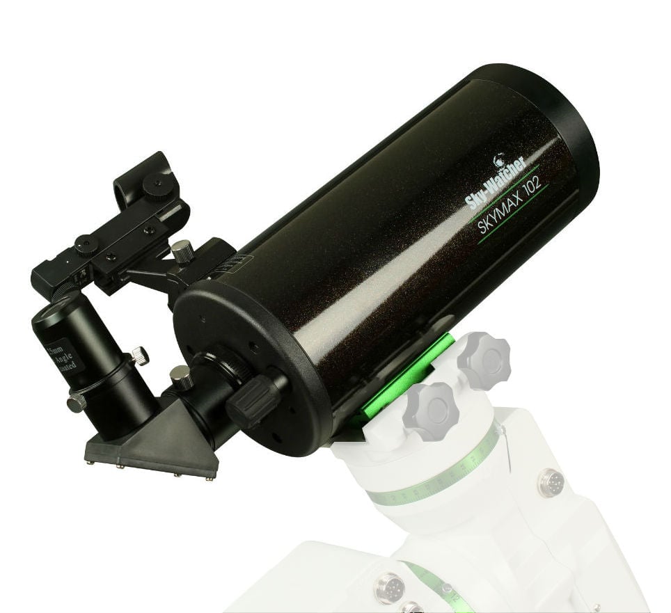 The Sky-Watcher Skymax 102mm Maksutov-Cassegrain is a compact, portable catadioptric telescope delivering sharp, high-contrast views ideal for planetary, lunar, and deep-sky observation. With a 102mm aperture and 1300mm focal length in a lightweight package under 5 pounds, this telescope combines excellent optical performance with remarkable portability—offering the light-gathering and magnification of a longer refractor without the size or weight. Its proprietary Radiant Aluminum Quartz coatings and Metallic High-Transmission coatings maximize contrast and minimize chromatic aberration, making it an excellent choice for observers seeking detailed planetary views and sharp stellar images.