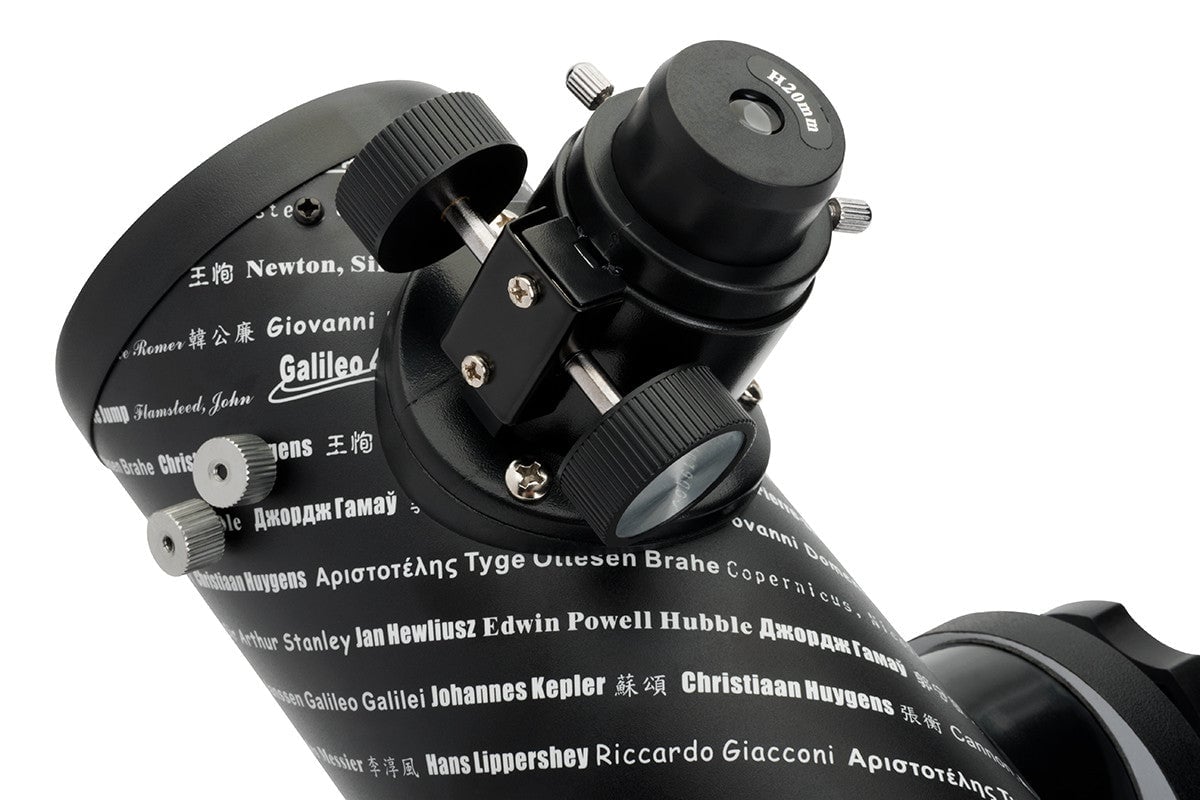 The Celestron FirstScope features a 76 mm aperture reflector optical tube designed as an ideal entry-level Dobsonian telescope for beginners and casual observers. This 76mm f/3.95 Newtonian reflector has a focal length of 300mm with a spherical primary mirror, and comes with two fully multicoated 1.25" diameter eyepieces that yield 15x and 75x magnifications. The compact tabletop design is highly portable and easy to use, making it an excellent choice for exploring the Moon, planets, and bright deep-sky objects without requiring complex setup or motorized controls.