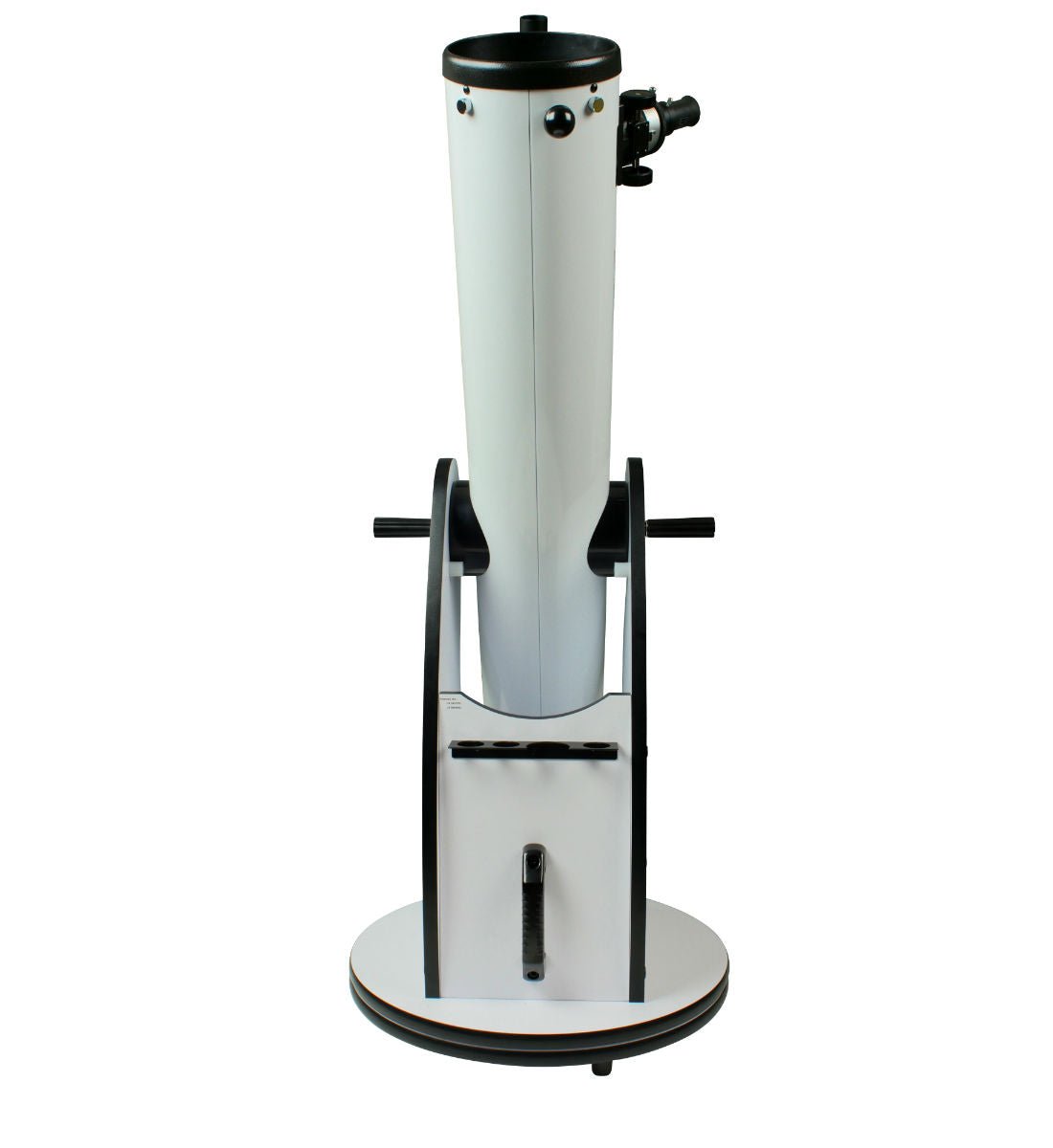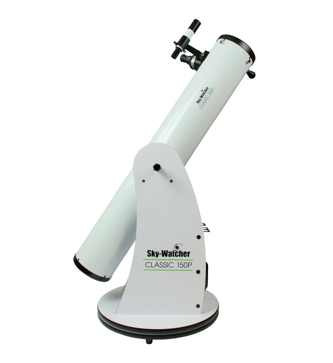 This 6-inch Classic Dobsonian features a 150mm aperture and 1200mm focal length (f/8) Newtonian reflector design that delivers impressive light-gathering capability for visual astronomy. With a parabolic primary mirror coated with Radiant Aluminum Quartz for 94% reflectivity, it excels at both deep-sky observation of faint nebulae and star clusters, as well as planetary and lunar viewing. The traditional Dobsonian design combines a robust yet portable package with Teflon altitude and azimuth bearings, a patented tension control handle for smooth tracking, and included accessories making it ideal for beginners seeking bright, detailed views of the night sky.