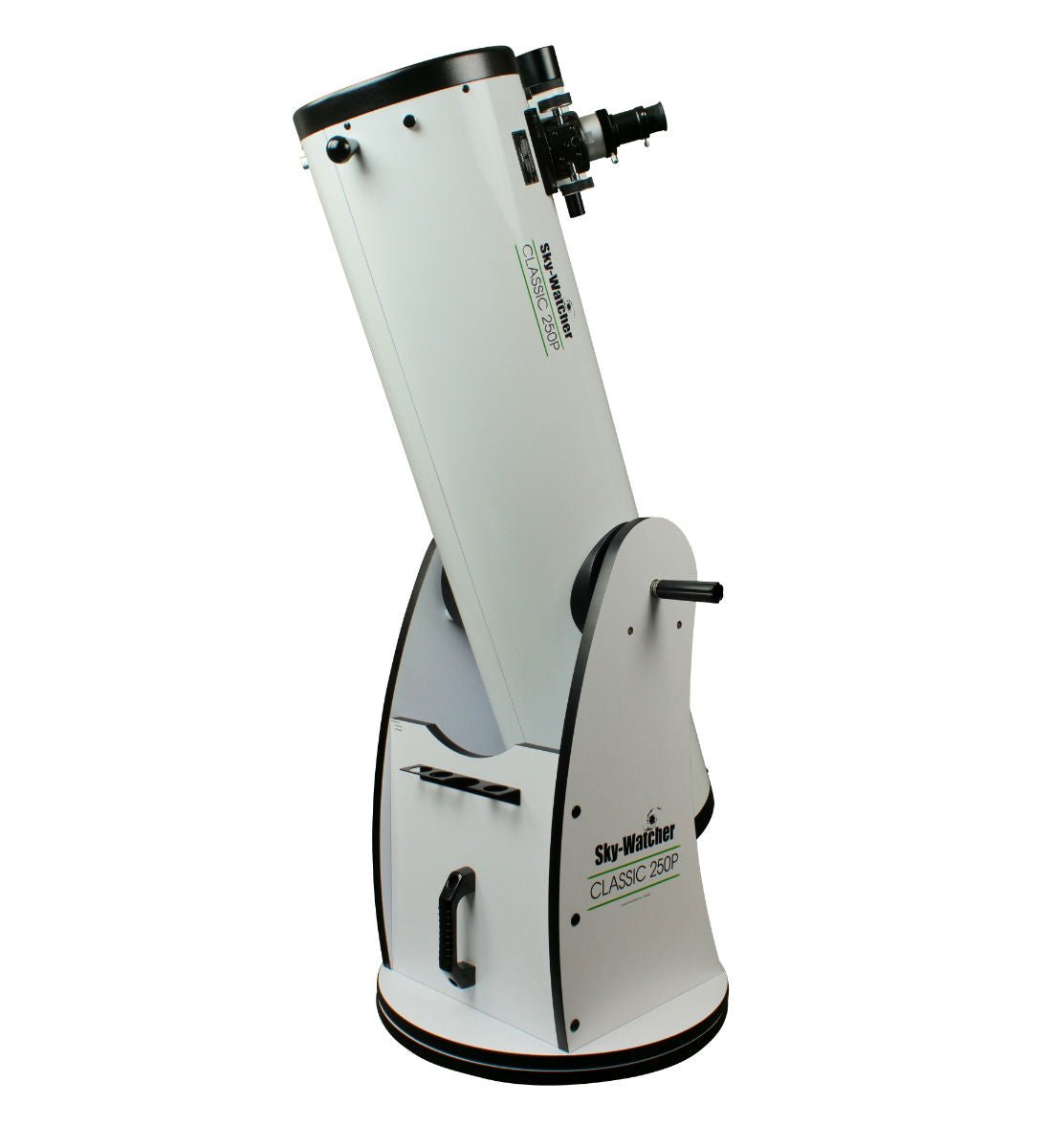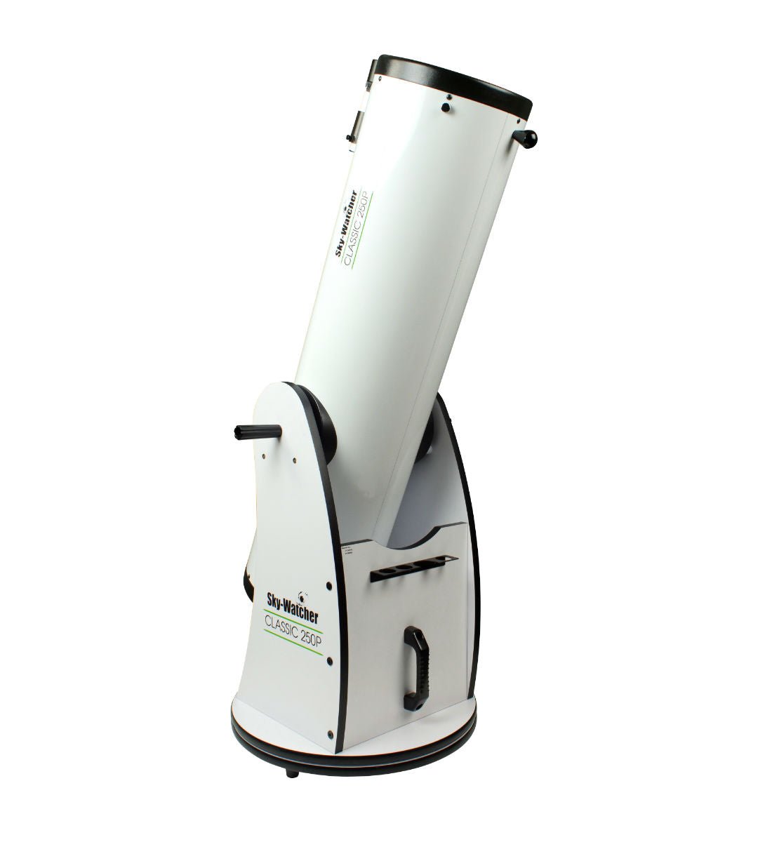 The Sky-Watcher Classic Dobsonian features a paraboloidal primary mirror to eliminate spherical aberration and a four-arm secondary mirror bracket with fine 0.5mm supports to reduce diffraction spikes and light loss. This simple yet effective design is perfect for visual observation of faint objects, such as nebulae, star clusters, and galaxies. The base uses Teflon bearings for smooth azimuth slewing and a patented tension control handle to lock the telescope in place. The model includes a 2-inch focuser with a 1.25-inch adapter, allowing the use of either eyepiece size.