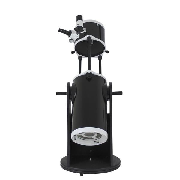 The Sky-Watcher Flextube 250P f/4.7 Dobsonian is a 10-inch collapsible Newtonian reflector designed for serious visual observing of deep-sky objects. With its patented truss-tube design, the telescope collapses to just 31.5 inches for easy transport while maintaining collimation, making it practical for amateur astronomers to explore faint nebulae, star clusters, and galaxies from dark-sky sites. The instrument features a parabolic primary mirror with 94% reflectivity coatings, smooth Teflon bearings, and a patented tension control handle for stable tracking, combined with a 2-inch Crayford focuser that accepts virtually any eyepiece.