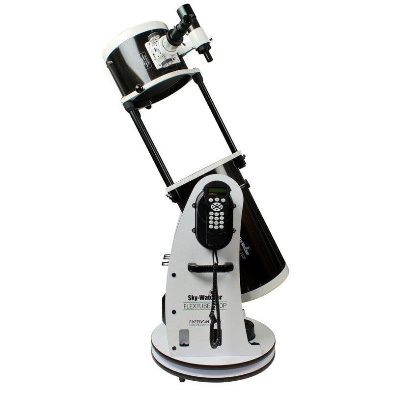 This 254mm aperture GoTo Dobsonian features a 1200mm focal length with f/4.7 focal ratio, delivering exceptional light-gathering power for deep-sky and planetary observation through a parabolic primary mirror with 94% reflective Radiant Aluminum Quartz coating. The innovative patented collapsible Flextube design retracts to half its length for ultimate portability without sacrificing collimation, while the Freedom Find dual-encoder system allows intuitive manual control alongside automated GoTo capabilities. Built-in Wi-Fi telescope control and the SynScan hand controller with 42,900-object database enable seamless navigation of nebulae, star clusters, galaxies, and the Moon.