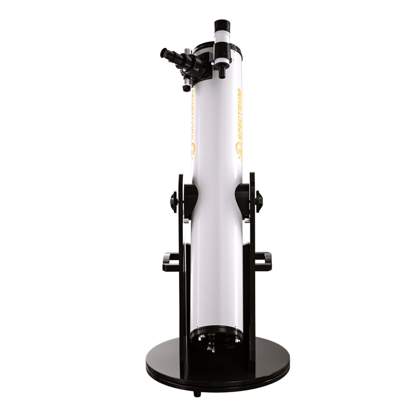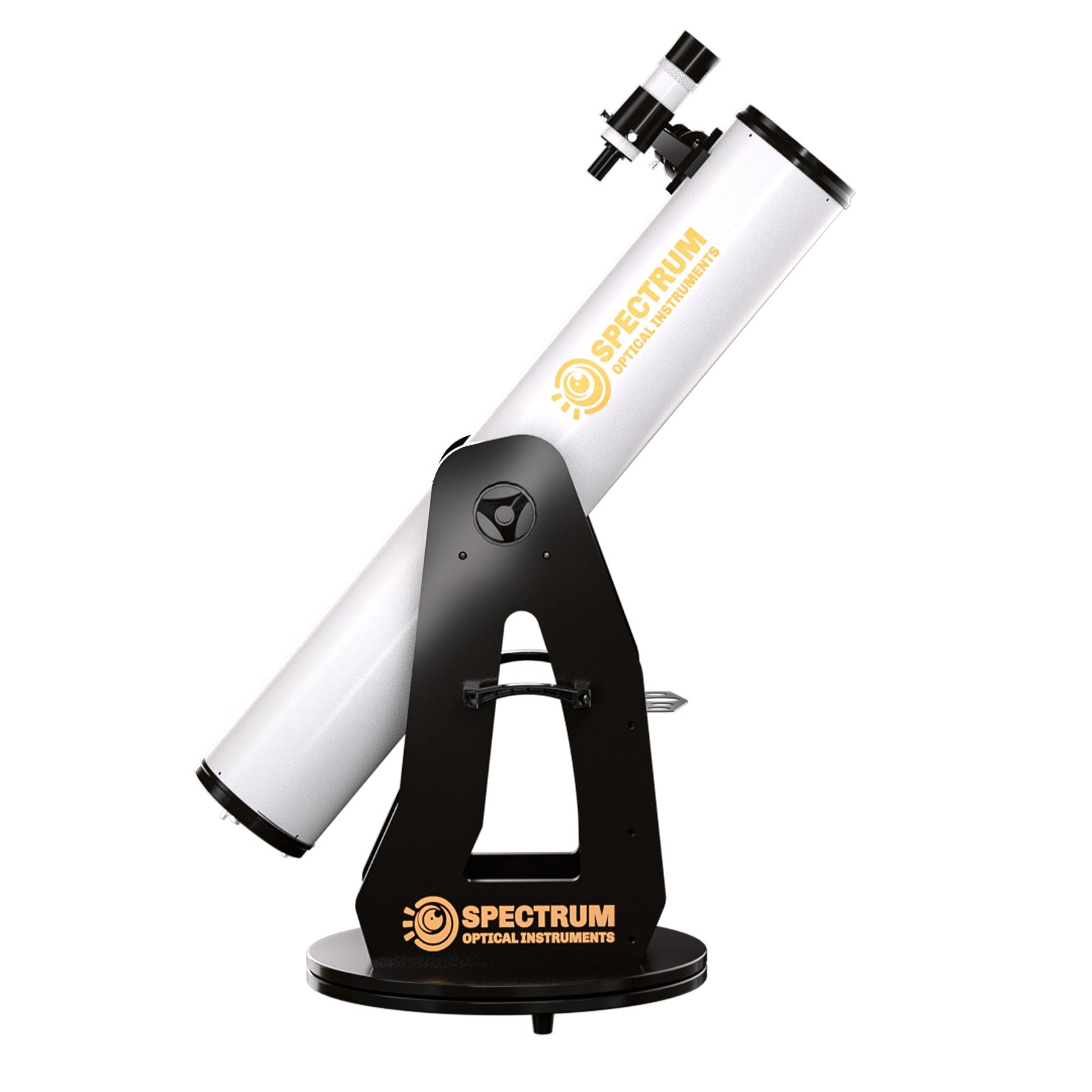 The Spectrum Optics 6" f/7.9 Dobsonian Reflector delivers excellent light-gathering ability and sharp optical performance in an affordable, beginner-friendly package. Featuring a 150mm parabolic primary mirror with curved spider vane design to reduce diffraction spikes on bright stars and planets, this telescope excels for visual observation of deep-sky objects, galaxies, nebulae, and lunar and planetary features. The dual-speed 2" Crayford focuser with 10:1 fine focus control and 1.25" adapter enables precise focusing at all magnifications, while the Teflon-padded Dobsonian base provides smooth, intuitive manual tracking across the night sky with minimal setup required.