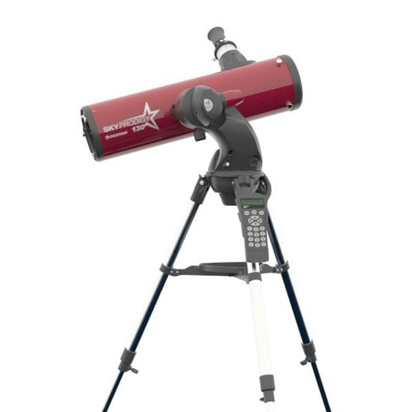 The Celestron SkyProdigy 130 is a revolutionary computerized Newtonian reflector telescope featuring proprietary StarSense technology that enables fully automatic sky alignment in just three minutes with zero user input required. This 130mm aperture f/5 reflector offers exceptional light-gathering capability and fast optical performance ideal for observing deep-sky objects, planets, and the Moon, while the motorized GoTo altazimuth mount provides access to over 4,000 celestial objects. With quick no-tool setup and an integrated camera for self-alignment, the SkyProdigy 130 is designed for astronomers of all experience levels who want hassle-free observing without extensive knowledge of star charts or night sky navigation.