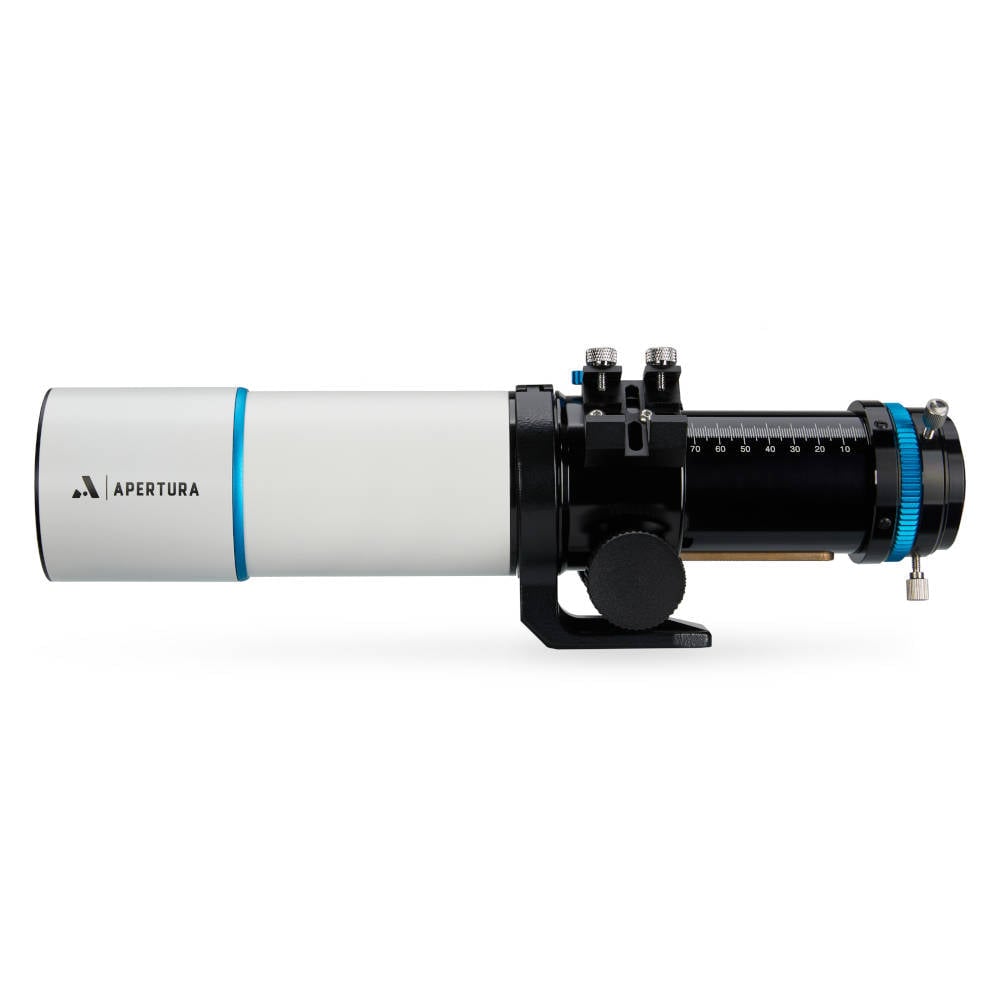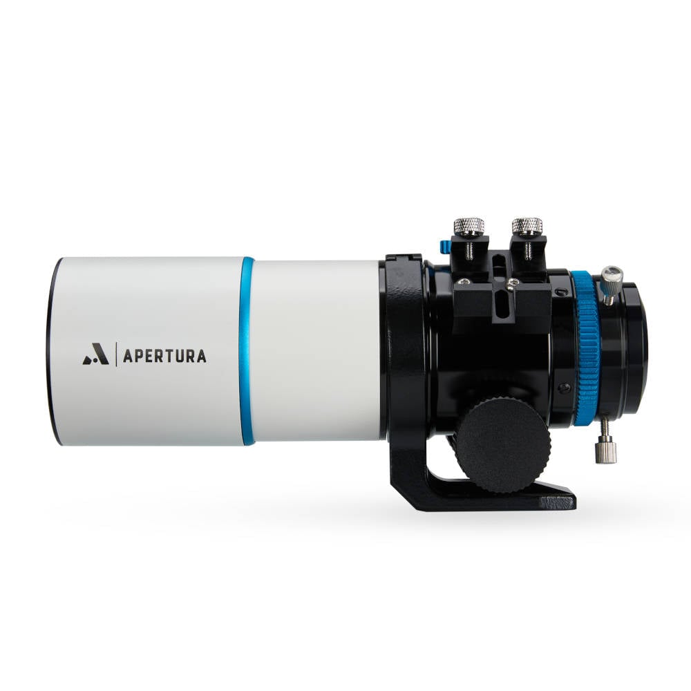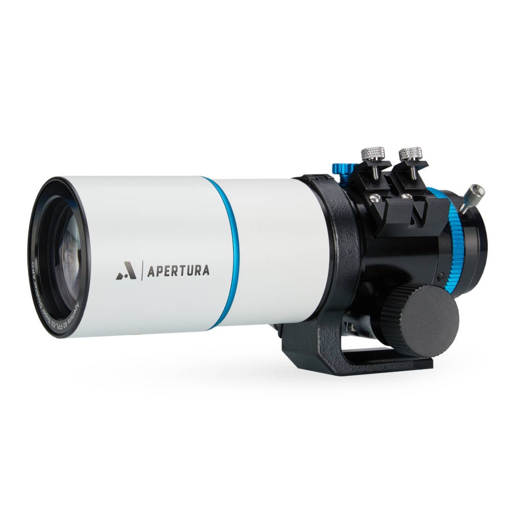 The Apertura 60EDR is a compact f/6 apochromatic doublet refractor featuring premium Ohara FPL-53 glass optics that deliver exceptional color correction, contrast, and pinpoint sharpness. Weighing just 3.25 pounds and measuring 9.5 inches with the dew shield retracted, this highly portable scope excels as a travel telescope, guide scope, super finder, or spotting scope for both visual observation and astrophotography. Its 2-inch dual-speed rack-and-pinion focuser with 10:1 microfocus and built-in camera angle adjuster enables precise focusing for wide-field imaging of deep-sky objects, planetary details, and bright solar system features.