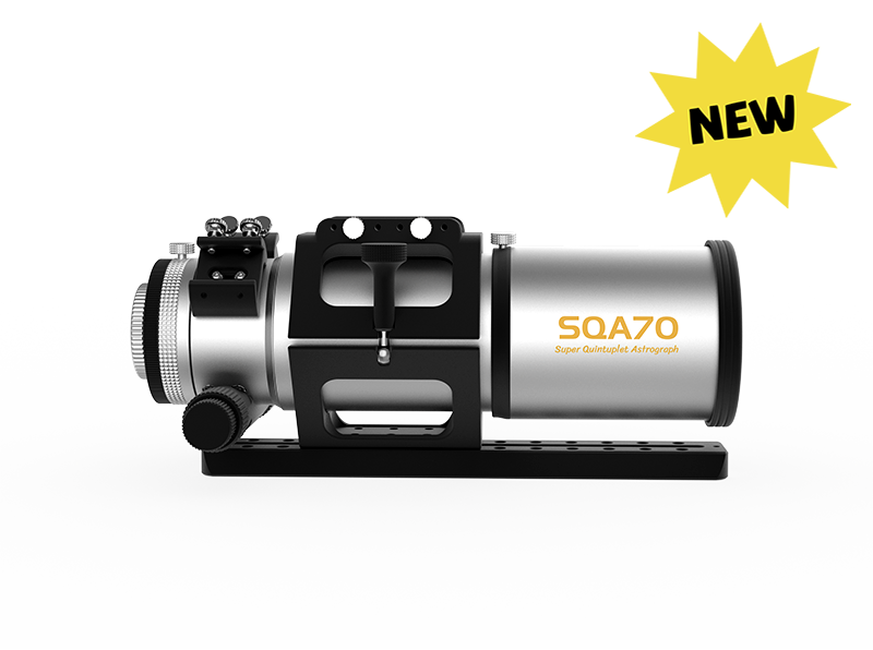 The Askar SQA70 is a premium quality quintuplet air-spaced ED glass Petzval Astrograph designed specifically for astrophotography. With 70mm aperture, 336mm focal length, and f/4.8 focal ratio, this refractor excels at wide-field imaging of nebulae and galaxies. The inherent flat field design means stars from corner to corner will be sharp without the need for an additional field flattener, making it ideal for full-frame camera systems. The central star point has an RMS radius of less than 1.84 μm, and the star point at the corner is less than 2.4 μm, demonstrating exceptional optical performance for demanding astrophotography applications.