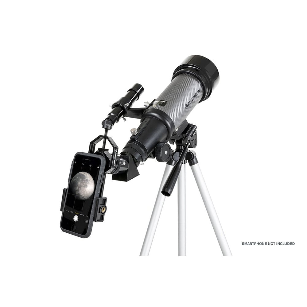 The Celestron Travel Scope 70 DX is a compact, fully portable 70mm achromatic refractor telescope designed for both astronomical observation and daytime terrestrial viewing. This complete kit includes a smartphone adapter with Bluetooth shutter release for capturing images through the eyepiece, dual eyepieces (20mm and 10mm) for flexible magnification, a 2x Barlow lens, erect image diagonal, 5x24 finderscope, Moon filter, adjustable aluminum tripod, and convenient travel backpack. With its lightweight 3.3 lb total weight and tool-free setup, it's an ideal portable telescope for beginners, travelers, and anyone seeking rewarding views of the Moon, planets, star clusters, and bright deep-sky objects.