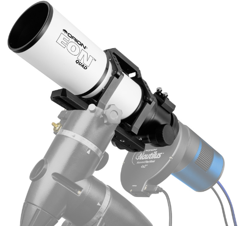 The Orion EON 70mm ED Quadruplet Astrograph is an exceptional wide-field ED astrograph featuring a 350mm f/5 lens system with four-element optics utilizing two Hoya FCD-100 ED lenses for ultimate color correction and contrast. With a 43mm image circle providing almost 6-degrees of sky on a full-format camera, this refractor delivers flat-field imaging for cameras up to 35mm full-format without requiring a separate field flattener. The 360° rotatable focuser enables precise photographic composition, making this astrograph ideal for wide-field astrophotography of the Milky Way, nebulae, and star clusters.