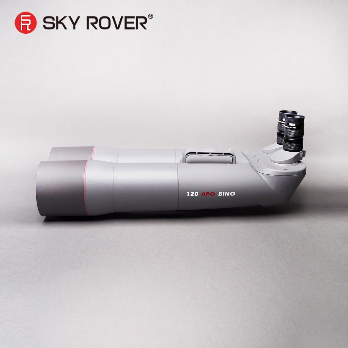 The Sky Rover 120mm APO Binocular Telescope is a large-format binocular telescope featuring doublet air-spaced apochromatic optics with Super ED glass elements to minimize chromatic aberration for exceptional lunar and planetary observation. With its 120mm aperture, this instrument provides significantly increased light gathering compared to smaller binoculars, delivering outstanding brightness and detail on celestial objects like Jupiter, Saturn, and the Moon across magnifications up to 188x. The rugged magnesium-aluminum alloy body and replaceable 1.25-inch eyepieces make it versatile and portable for serious amateur astronomers and astrophotographers seeking premium optics at accessible pricing.
